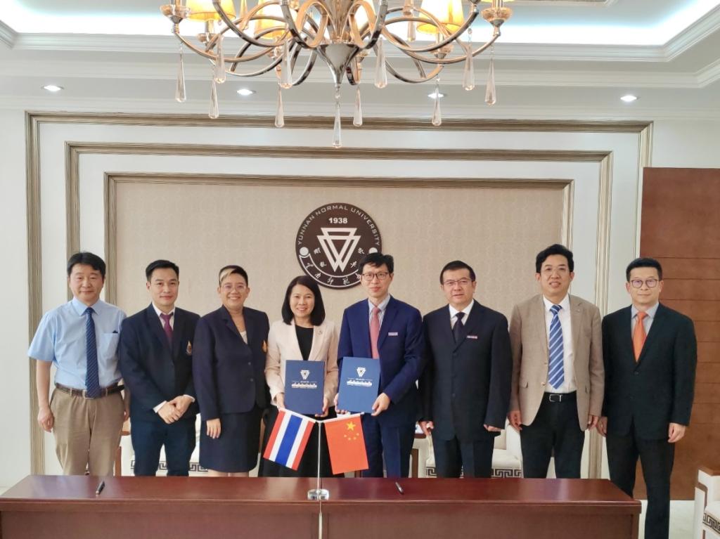 4月28日下午,泰国清莱府皇太后大学校长玛奇马•纳拉迪索恩一行到访我校,校长胡金明会见代表团并签署合作谅解备忘录。副校长牛治亮,云南华文学院院长王秀成,对外合作交流处处长杨叶华参加会见。