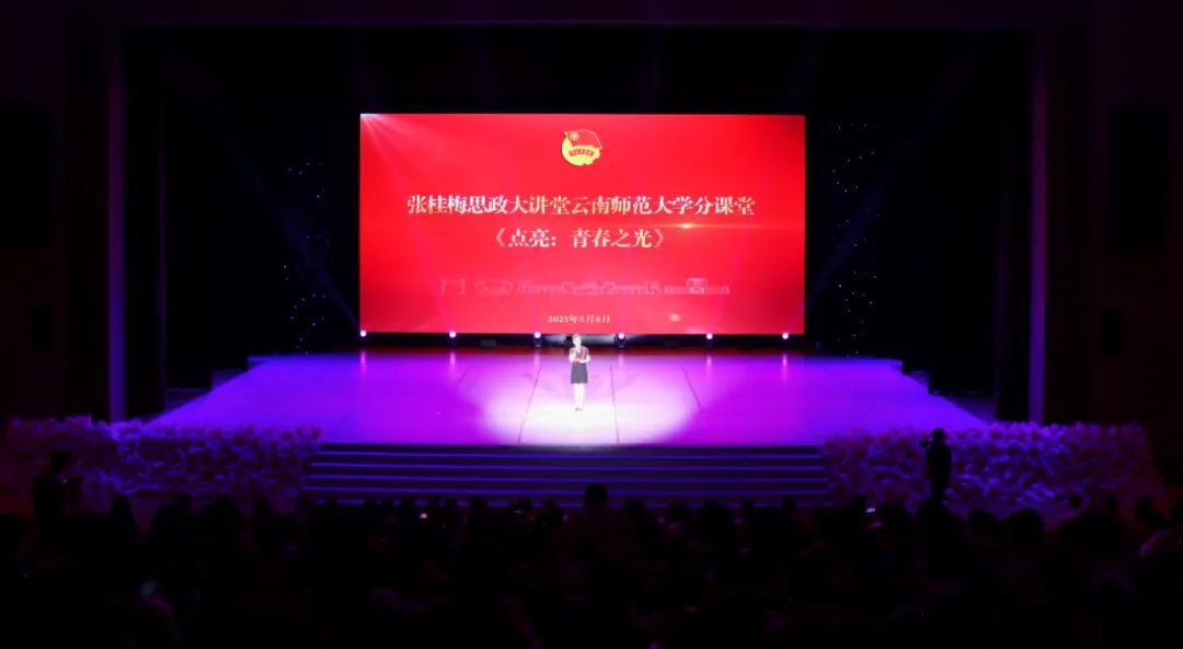 5月8日,张桂梅思政大讲堂云南师范大学分课堂《点亮:青春之光》暨2025年共青团表彰大会在呈贡校区举行。这不仅是一场思政教育的生动实践,更是一次青春精神的集体致敬,云师学子在聆听青年“遇见光、追逐光、敢发光”的成长历程中感受青年榜样力量。