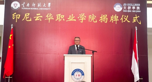 5月17日,在云南省委书记、省人大常委会主任王宁,中国驻登巴萨总领事张志昇等的见证下,云南师范大学与印尼文桥三语学校合作共建的印尼云华职业学院举行揭牌仪式。张祖武书记代表学校揭牌并致辞,表示印尼云华职业学院的成立,标志着两校合作迈入新的发展阶段。双方将聚焦华文教育、国际中文教育、“中文+职业教育”及职业技能培训等领域,加速推进一批合作项目落地。同时,积极拓展科技、人才、文化、体育等多领域交流,以“小而美”项目为载体,持续增进中印尼传统友谊,深化双边友好合作。