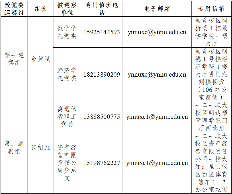 学校十三届党委第六轮巡察进驻一览表
