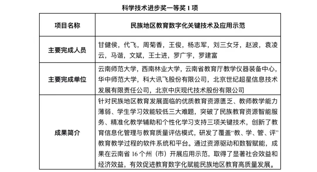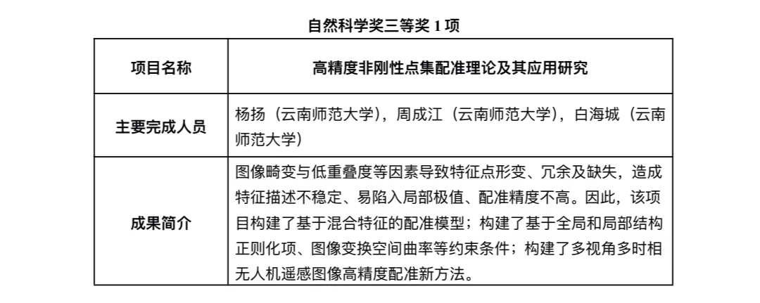 由云南师范大学牵头形成的6项成果获2024年度云南省科学技术奖,其中自然科学奖一等奖、科技进步奖一等奖各1项,自然科学二等奖3项、三等奖1项。云南师范大学参与形成的3项成果分获科技进步奖一等奖和二等奖各1项(排名第4和第5),自然科学奖二等奖1项(排名第3)。