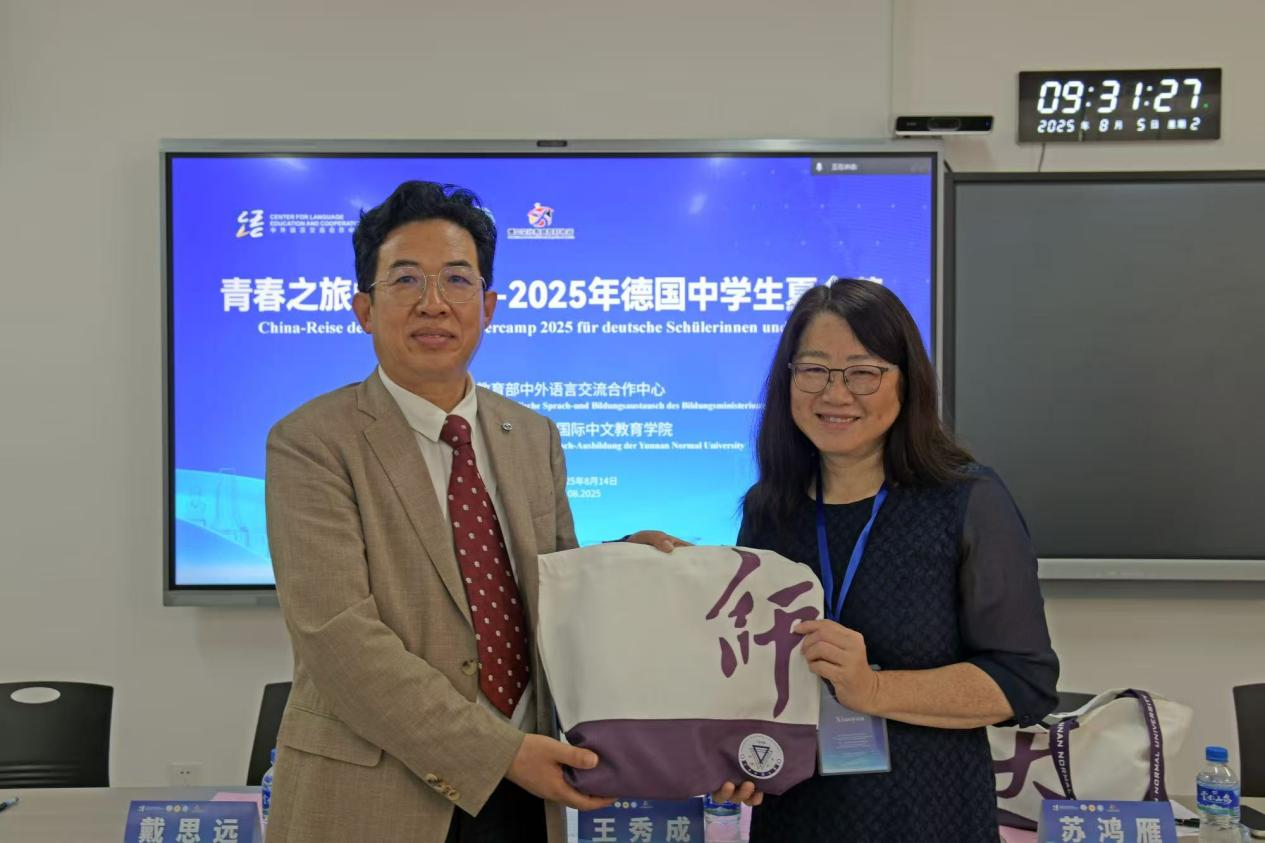 8月5日,由教育部中外语言交流合作中心主办,云南师范大学承办的“青春之旅中国行—— 2025年德国中学生夏令营”在云南师范大学呈贡校区开营。德中文化教育友好协会会长苏鸿雁,德国内卡河畔华文学堂校长丁小燕,国际中文教育学院院长王秀成、副院长戴思远,德国巴符州、黑森州 4所中文学校及1所德国文理高中的23名德国中学生、工作人员参加开营仪式。