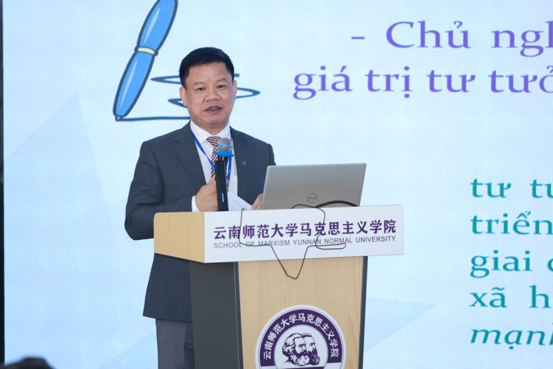 校党委副书记和雪莲在致辞中介绍了学校传承西南联大红色基因、深耕教师教育87载的历史。近年来,学校依托区位优势开展南亚东南亚国际交流,积极构建国际中文教育体系,培养了一批精通中越语言文化的国际化人才。希望加强“中越马克思主义理论比较研究”领域研究,为两国在理论层面的交流提供学理支撑;聚焦中越治国治党和文明交流互鉴中的重大理论与现实问题,组织科研团队开展联合攻关,深入研究中越两国在社会主义建设过程中如何运用马克思主义理论解决实际问题;搭建合作机制和交流平台,培养具有国际视野、精通马克思主义理论且熟悉中越两国国情与文化的复合型人才。