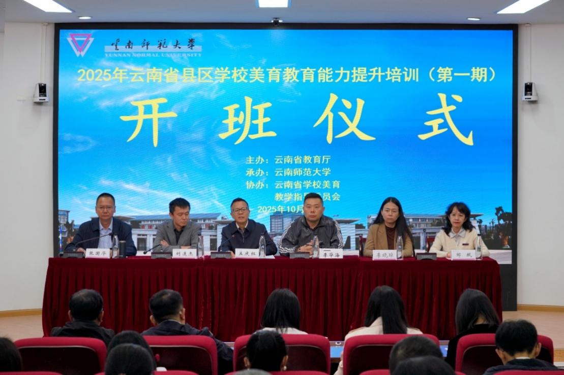 10月21日,由云南省教育厅主办、云南师范大学承办,云南省学校美育教学指导委员会协办的云南省学校美育教育能力提升班(第一期)在云南师范大学一二·一西南联大校区开班。云南师范大学副校长孟庆红,云南省教育厅体育卫生艺术处副处长李华海,云南师范大学艺术学院院长、云南省学校美育教学指导委员会秘书长刘连杰,云南师范大学继续教育学院(教师发展学院、职业技术教育学院)党委书记邹飒、院长张国华,64名来自云南省各县区的学校美育教育骨干教师参加了开班仪式。仪式由张国华主持。