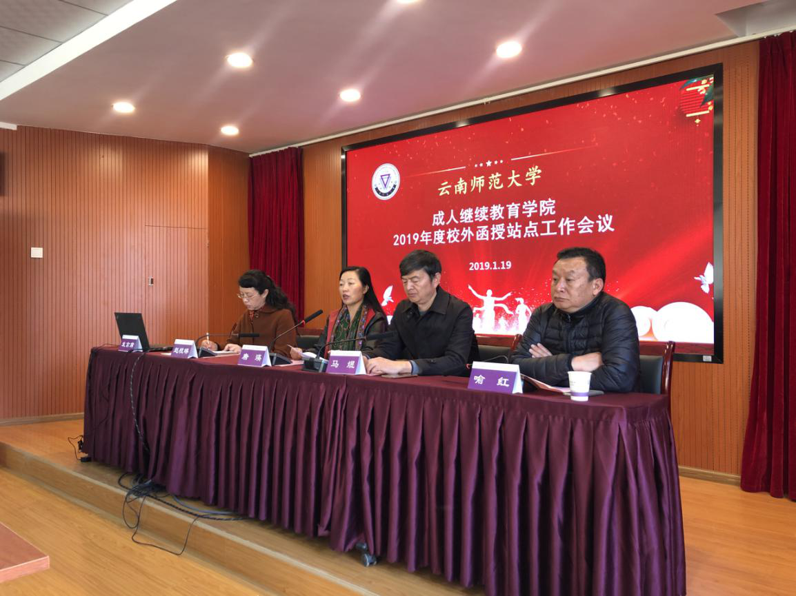 1月19日,成人继续教育学院组织召开了2019年度校外函授站点工作会议。成人继续教育学院党委书记马煜、院长唐瑛、副院长喻红,以及站点管理科、教务科、招生办、财务科等相关科室科长出席了会议,本次会议召集了昆明及曲靖地区共23个函授站参会。会议由赵枝琳副院长主持。