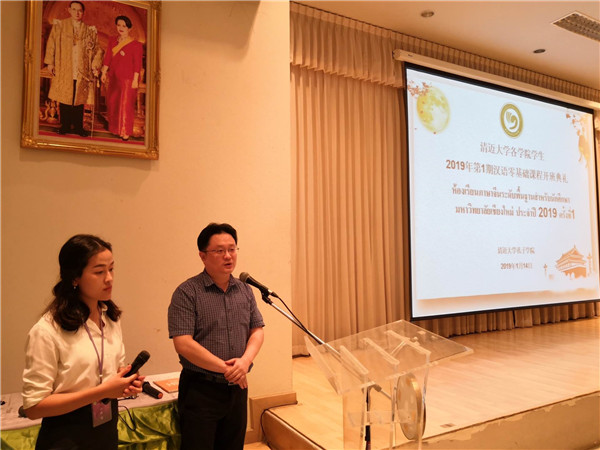 114日下午,清迈大学各学院学生2019年第1期汉语零基础课程开班典礼顺利举行。这是清迈孔院首次面向清迈大学中文系以外的学院开设初级汉语课程,旨在让清迈大学学生对中国语言和文化有初步了解,课程学习完后达到HSK1水平,奠定进一步学习汉语的基础。