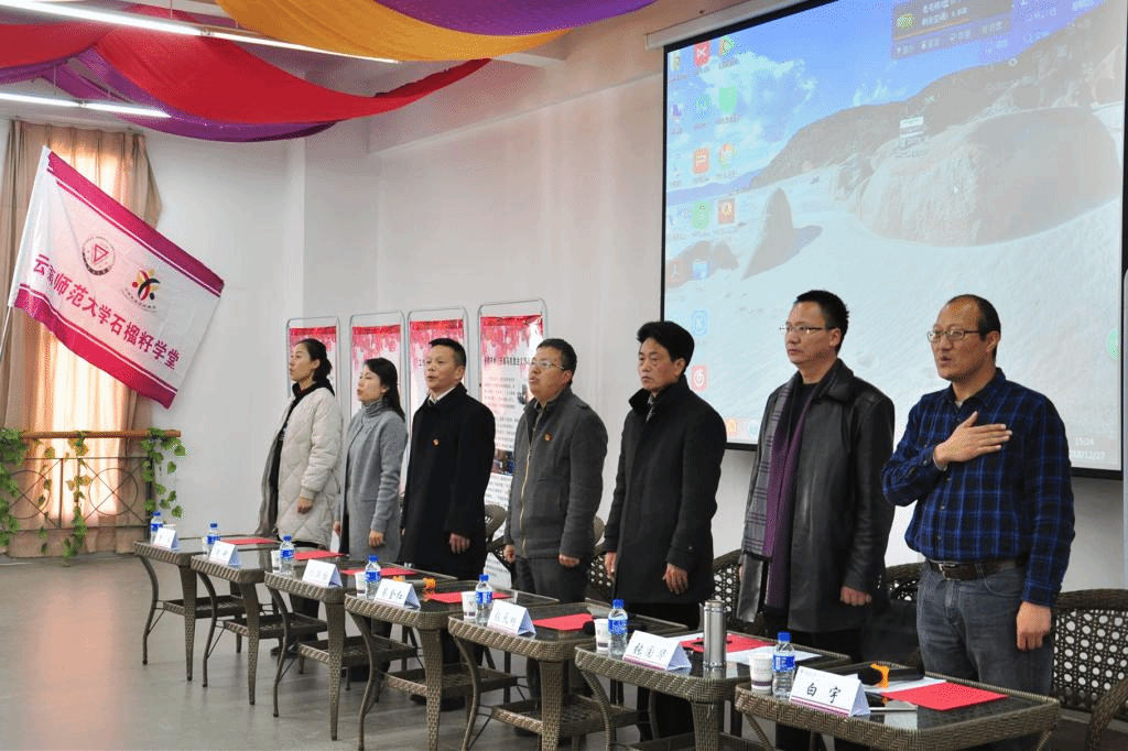2018年12月27日下午15:30,云南师范大学“石榴籽学堂”第二期开班仪式在旅游与地理科学学院(睿智五号楼)416室顺利举行。校党委组织部部长蔡金红、学生工作部(处)部(处)长杨卫国、旅游与地理科学学院党委书记张天明、校党委宣传部副部长周研、学生工作部(处)副部(处)长张国华、校团委副书记曹逸凡、学校就业处王浩、学生工作部(处)管理科努尔古丽、白宇辅导员名师工作室成员以及127名学员等参加本次开班仪式。