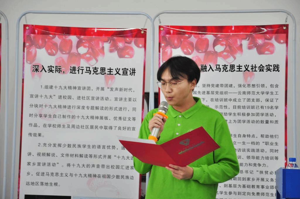 活动伊始,全体起立,奏唱国歌。随后,旅游与地理科学学院党委副书记白宇老师介绍参加开班仪式的领导,并对石榴籽学堂做出了相关的介绍。随后,学生工作部(处)副部(处)长张国华老师对石榴籽学堂学员做了动员,指出石榴籽学堂的开办是响应习近平总书记提出的各民族要像石榴籽一样紧紧的抱在一起,团结进步,共同繁荣,并对云南师范大学石榴籽学堂的学员们提出了四点建议与要求。