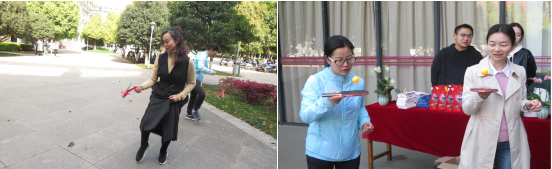 活动内容包括一分钟踢毽子、一分钟跳绳、一分钟颠乒乓球等。音乐舞蹈学院的老师们愉快地参与到比赛当中,大家精神抖擞、英姿飒爽,场面分外热烈。(音乐舞蹈学院 供稿)