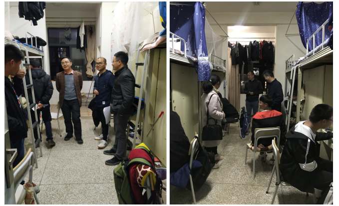 走访过程中,学院领导及班主任详细询问学生近期的学习、生活情况,听取学生的诉求与建议,告诫学生要遵守学校规章制度,重视知识学习,合理规划大学生涯,提醒学生注意防溺水、防盗、防诈骗、防传销、防食物中毒、防人身伤害等情况的发生,并提醒学生外出时注意乘车等交通安全,不要乘坐非法运营车辆。学院领导和班主任对学生集体观念、日常良好行为习惯养成、自我管理意识、健康向上宿舍氛围、良好学风的形成提出了明确的要求。