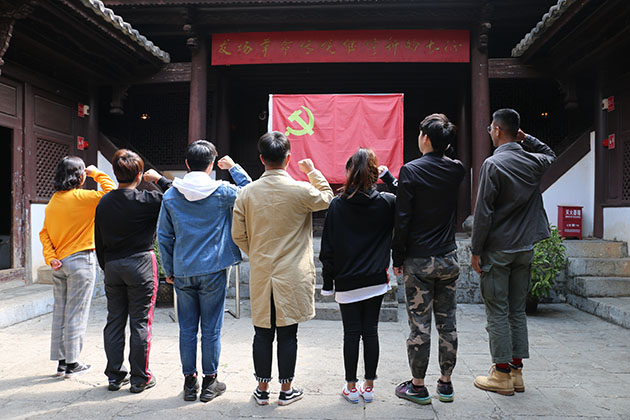 宣讲团首先参观了红军纪念馆,在讲解员的带领下重温长征历史。遵义会议、四渡赤水、巧渡金沙江……八十多年前的画面仿佛正在眼前上演,这一幕幕是党的奋斗历史,更是人民的奋斗历史。在丹桂村中央红军总部前,郑伟俊老师带领宣讲团的党员们面对党旗,重温入党誓词,不忘九十年之艰苦奋斗历程,牢记初心使命,一路向前。随后,宣讲团在党旗的引领下,重走长征路。“红军不怕远征难,万水千山只等闲”,大家在这一路上重温了红军将士在云南留下的点点滴滴,重走长征路,在磨练中成长。回顾长征历史,缅怀先烈。