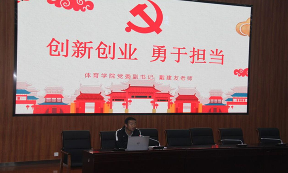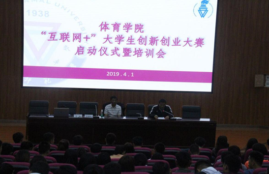 2019年4月1日晚,体育学院“互联网+”大学生创新创业大赛启动仪式暨培训会在汇学楼2栋101报告厅举行。会议由体育学院党委副书记戴建友主持,同时特邀了全国优秀教师、云南省人民政府参事、云南师范大学二级教授、博士研究生导师、体育学院首席“创新创业”指导教师饶远教授,另外参会的还有体育学院全体辅导员、2018级研究生、2016级全体本科生、2017级和2018级本科生学生干部共计550人。