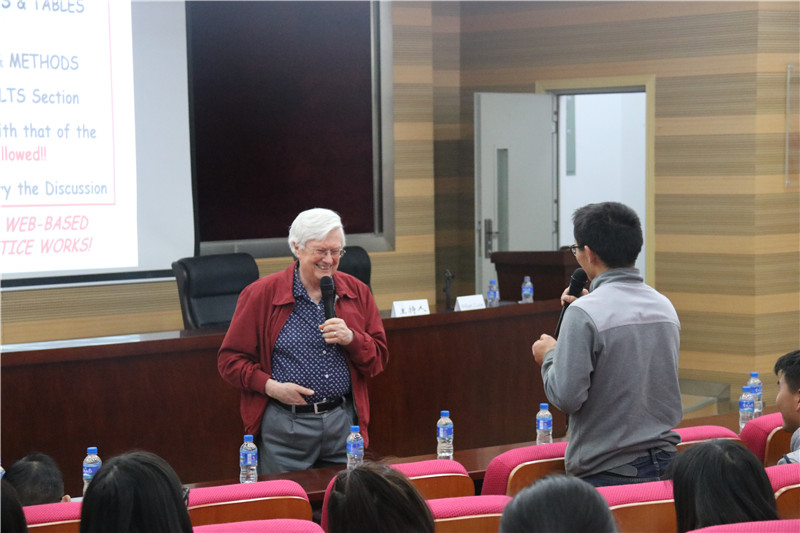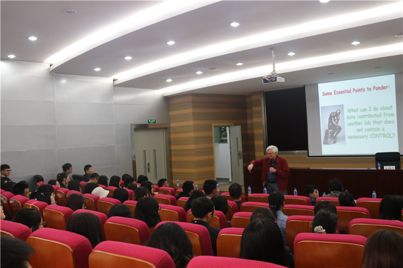 随后一天半的时间,William J. Lucas教授用生动有趣、浅显易懂的语言围绕“What does it take to be a successful scientist?”为大家带来一场非常有价值的培训,内容包含了如何与期刊编辑沟通、如何投稿、如何规范撰写科技论文、写作技巧、如何准备第一篇科技论文以及如何避免触犯学术错误等内容。讲座过程中Lucas教授强调了诚信、严谨、独立、沟通及拥有明确目标是科学研究工作者需有的品质,特别是诚信问题。期间,师生们积极踊跃和William J. Lucas教授互动,精彩的培训内容吸引了全校200余人师生参加。