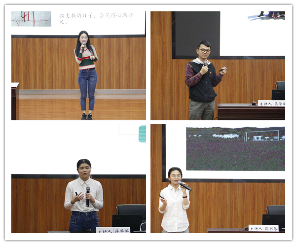 来自兵团第三师红旗农场中学西部计划志愿者、2017届在岗志愿者沈建丽结合自身感悟和照片与同学们分享其在新疆支教与孩子们发生的感动故事;兵团第三师图木舒克市团委西部计划志愿者、2017届服务志愿者吴华威讲述自己走上西部志愿服务工作岗位的经历,并以“踏着青春的步伐,唱一首担当的歌”为主题呼吁更多的新时代大学生加入西部计划志愿者这个大家庭;兵团第三师医院西部计划志愿者蒋芊芊就选择兵团的原因及收获两方面讲述自己的西部计划服务经历;最后,兵团第三师图木舒克团市委副书记邵书琴向在座师生简介新疆生产建设第三师团发展概况、西部计划日趋完善的制度保障和经费保障。