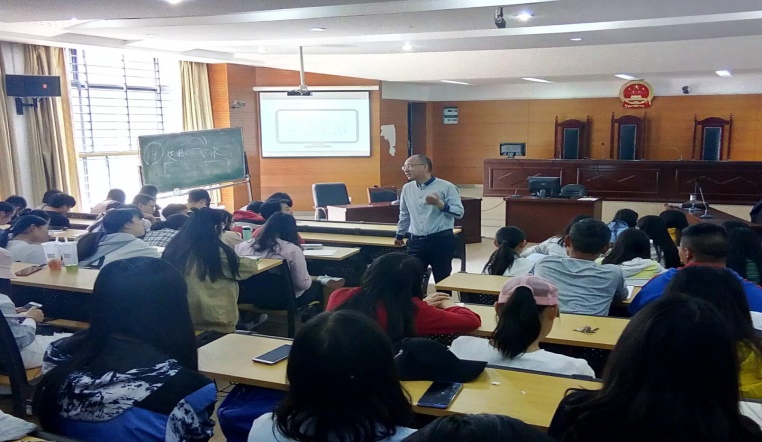 4月11日下午,为迎接2019年4月15日“全民国家安全教育日”的到来,由云南师范大学主办,哲学与政法学院、云南纪检监察学院承办的系列活在明德1号308模拟法庭举行。本次活动内容是由法律系副主任聂德明老师作《中华人民共和国国家安全法》专题讲座。我院2018级法学本科A、B班全体学生参加,我校旅游与地理科学学院、教育科学与管理学院、历史与行政学院的部分学生也踊跃参加专题讲座。