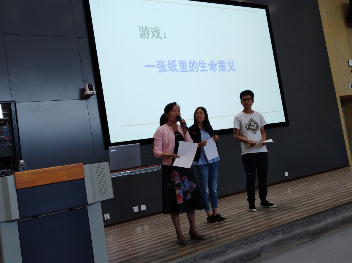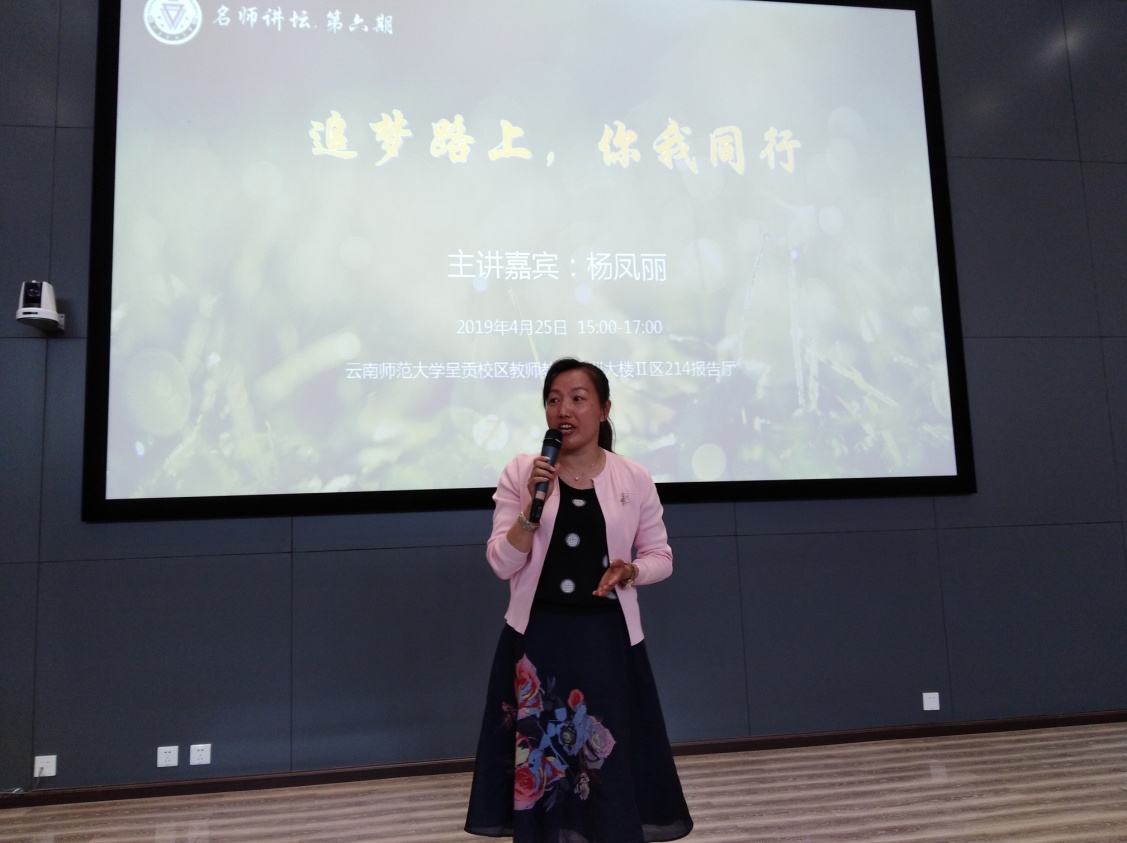杨凤丽副校长系我校2000届生命科学学院毕业生,中学高级教师,大理州第八次党代会代表,大理州中小学教师初中生物学术工作站主持人,大理州妇女儿童发展规划评估专家,大理州关心下一代工作委员会特邀委员。长期以来一直在教学一线,工作成绩突出,先后获得大理市“文明教师”、大理州“优秀教师”、云南省委高校工委 “优秀共产党员”、大理州“优秀基层党务工作者”、大理州第二届“白州教学名师”等各种级别的殊荣四十余项。被聘为大理大学国培计划(2016)导师组专家,保山市隆阳区教育局“国培计划(2017)”首席专家。杨凤丽副校长以“追梦路上,你我同行”为主题,通过邀请现场3名同学参与“一张纸里的生命意义” 的互动游戏,引导在场学生思考生命的意义和未来的人生规划——“我们不能预知、也无法延长生命的长度;我们能做的,唯有增加生命的厚度”。