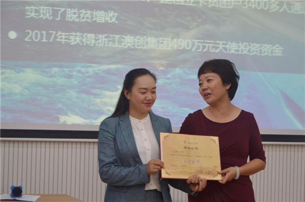 讲座开始之前,就业处李红处长为何永群校友颁发讲座嘉宾证书。