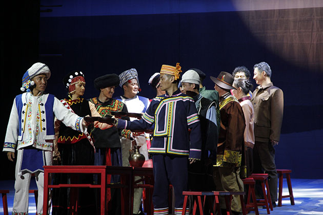 据悉,该部话剧以时空纵横的手法讲述白鹭村50年来民族团结融合的历程,通过乡村巨变来体现改革开放40年来的发展。剧中树立了为子孙谋幸福的藏族支部书记扎西和一群淳朴善良、向往幸福的各族乡亲形象,用诙谐幽默的语言,跌宕的故事情节揭示了人物性格特点,反映了新时代中国农民的精神风貌,总结了改革开放40年过程中的发展变迁。