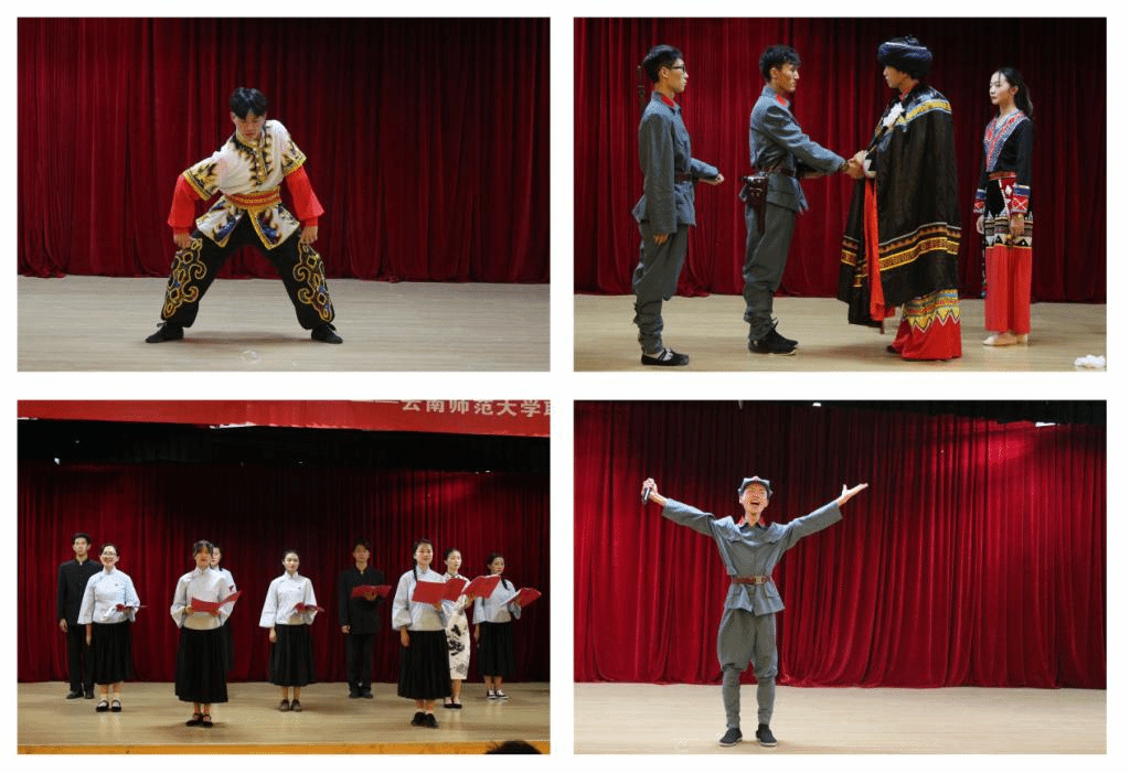 一首首激情澎湃的诗,一曲曲富含云南特色的歌,一幕幕感人肺腑的历史场景,音乐、朗诵、表演巧妙结合,沟通过往与今朝,展现了职业技术教育学院学子的青春风采。