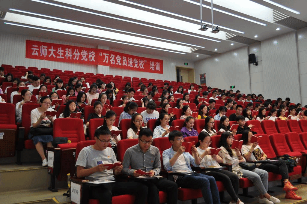 2019年6月4日至6日,云南师范大学生命科学学院分党校在能源与环境科学学院107报告厅开展了为期三天的“万名党员进党校”第一期培训,来自物电、化工、能环、生科四个学院162名党员参与了此次培训。本次培训主要由重温入党誓词、党员政治生日、党章诵读、专题讲座、小组研讨等部分组成。