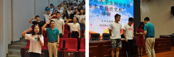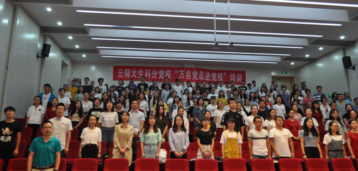 2019年6月15日至6月16日云南师范大学生命科学学院分党校在能源与环境科学学院107报告厅开展了为期两天的“万名党员进党校”第二期的培训,来自物电、化工、能环、生科四个学院共199名党员参与了此次培训。本次培训主要由重温入党誓词、庆祝党员政治生日、党章诵读、专题讲座、小组研讨等部分组成。