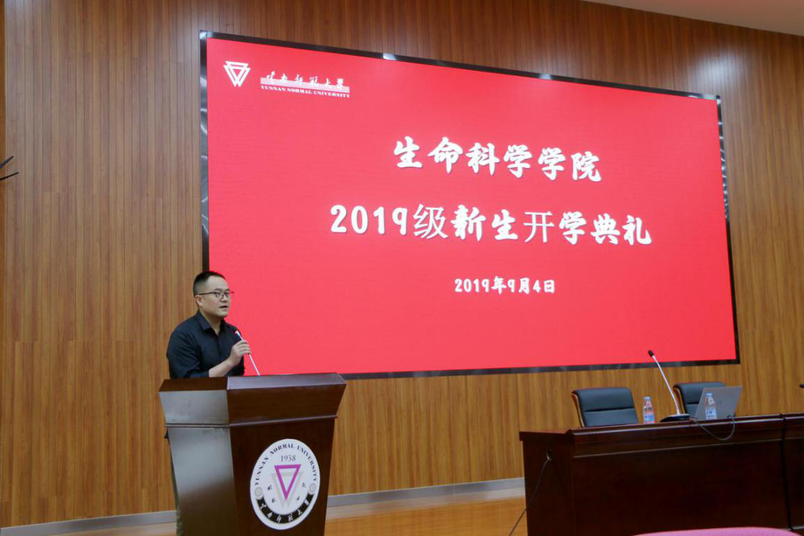 2019年9月4日下午,生命科学学院在云南师范大学呈贡主校区汇学2栋101报告厅举行了2019级新生开学典礼。生命科学学院党委书记周滔、党委副书记唐明靖、副院长金朝光、副院长许波、马铃薯科学研究院副院长尚轶、团委书记高艳秀、院研究生学生会主席杜俊宏、院团委副书记杨心媛,以及辅导员、2019级全体班主任,与408名新生一起参加典礼。