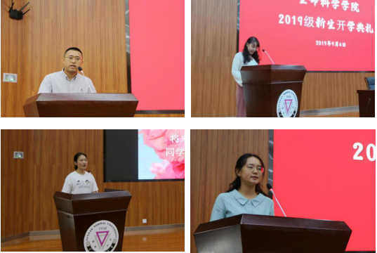 老生代表2016级应用生物技术班薛梦娇发言,她结合自己大学四年的经历,从“角色”、“心态”、“感恩”三个方面提醒新生要调整心态,认真对待学习生涯。研究生新生代表王宇贤就“如何才能成为一名合格的研究生”,表达了要走好自己的人生路,努力拼搏,为院争光的决心。本科新生代表2019级生物科学类E班黄愿如同学对大学四年作出美好展望,她表示会在大学四年中用努力和奋斗迎接最美好的青春。教师代表祝光涛在发言中从“恒心”、“信心”、“用心”三点出发,希望全体新生“不断磨练,成就更好的自己”。