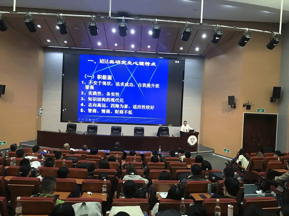 随后开展新生入学讲座“学习生活篇”,学院党委副书记周宁向新生们介绍了学生管理、学生活动、学生社团等工作,讲座由院学生办主任李明老师主持。院教务办副主任郭秋平还就2019级MBA培养方案、教学秩序、课程考核、论文撰写等进行了讲解。