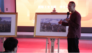 悟初心——“画中话”小党课红色经典美术作品赏析环节,用以画引历的方式,从点线面立体展开,分别邀请学院教师贺江、王征,学生党员张洛瑜、于艺带领大家赏析了《启航——中共一大会议》、《南昌起义》、《走过岷山》、《开国大典》四幅红色经典主题油画,四位师生从现实切入历史,生动形象地介绍红色革命经典艺术的创作过程和创作背景,并将画作中波澜壮阔的历史与情节娓娓道来,从美术专业角度为大家阐释了作品的蕴含的独特思想价值、美学内涵,讲解者在进行自我教育的同时引导大家将美术作品生动直观的视觉冲击转化为心灵震撼,引发思想共鸣,师生党员在提升专业素养的同时也加深了对革命史的了解。