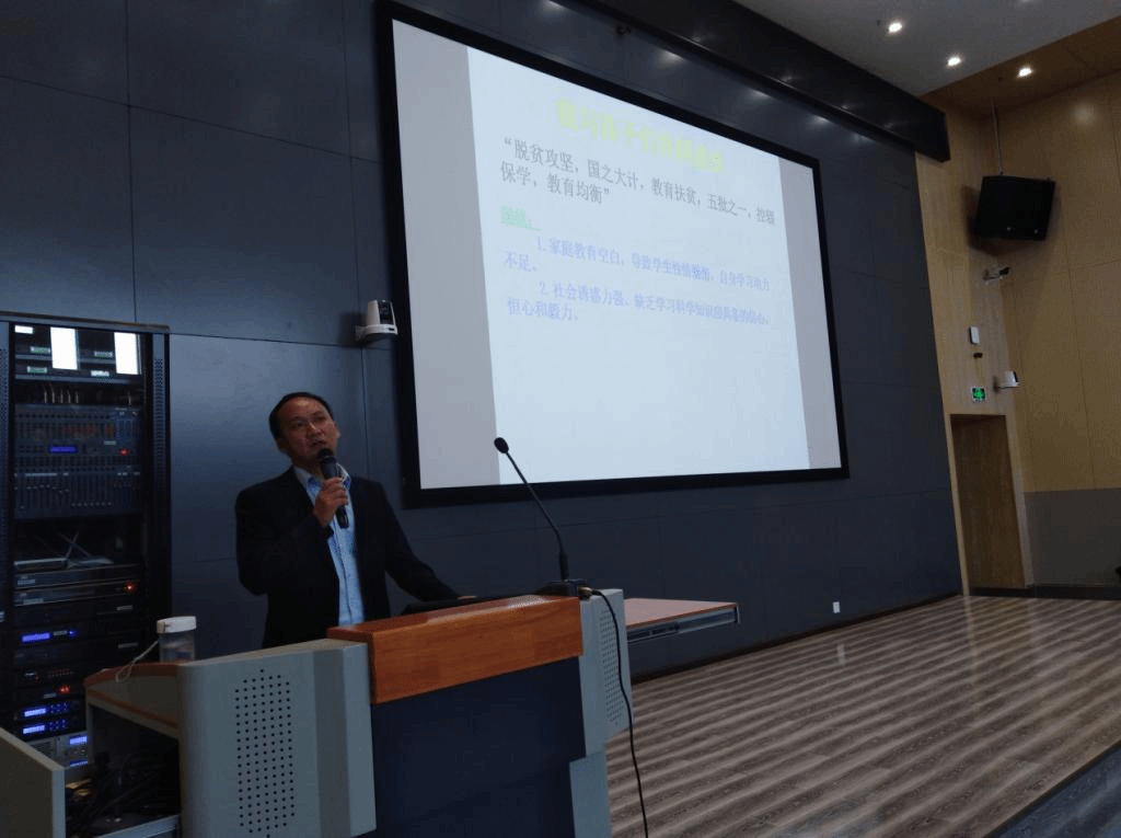 周加超校长以“我和我的孩子们”为主题,从展示坝心乡中心学校所在位置、校园面貌和教学条件开始,通过分享自己多年的从教经历和内心感受,告诉在场同学:“学校虽小,但却是成就我的大舞台。”接着,结合云南师范大学近几年对外发布的毕业生就业数据,从毕业生的就业流向、教师工资水平及福利待遇、社会认可度等维度分析教师行业总体情况和未来发展前景,旨在引导同学们对教育行业的职业认同感和未来就业的信心。最后,围绕“我与孩子们共同成长”这条主线,结合中小学教育现状和自己在乡镇学校所经历的典型案例,从“控辍保学”这个角度向在场同学们诠释什么样的教育才是让教师愉快的施教,让学生健康快乐的成长。