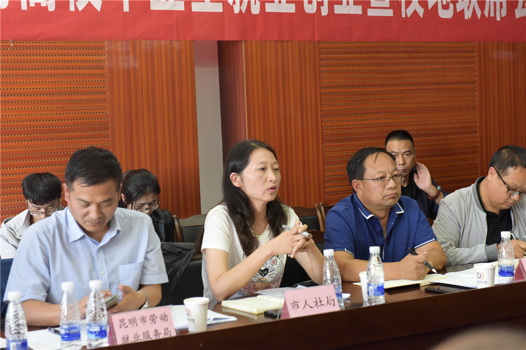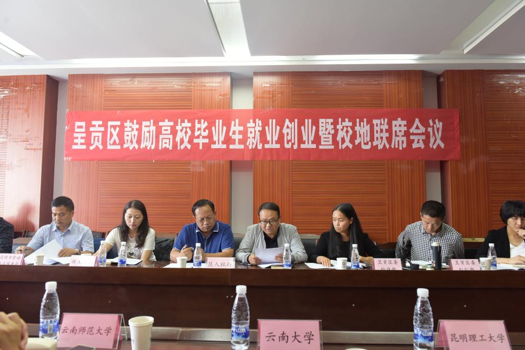 云南大学、昆明理工大学、云南师范大学、云南民族大学、昆明医科大学、云南中医药大学、云南艺术学院、云南开放大学、云南交通职业技术学院、云南特殊教育职业学院共10所驻区高校,昆明市人社局、市就业局、呈贡区委组织部、区委统战部、区人社局、区就业局相关领导参加会议。呈贡区人社局副局长刘晓主持会议。