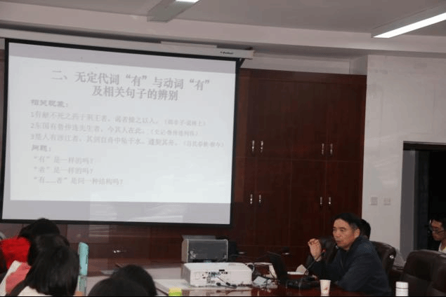 11月21日晚,潘玉坤教授作了题为《关于古汉语句子的分析理解》的专题讲座,讲座由文学院教师李彬主持。讲座中,潘教授结合古汉语中的实际例子,专业的理论分析,深入地讨论了古汉语句法结构以及如何辨别无定代词“有”与动词“有”,并阐释产生地相关现象和进行了实证分析。潘教授强调,作为一名中文系的学生在学习中应对问题进一步深度思考,不拘泥于教材,全方位的进行分析辩证。