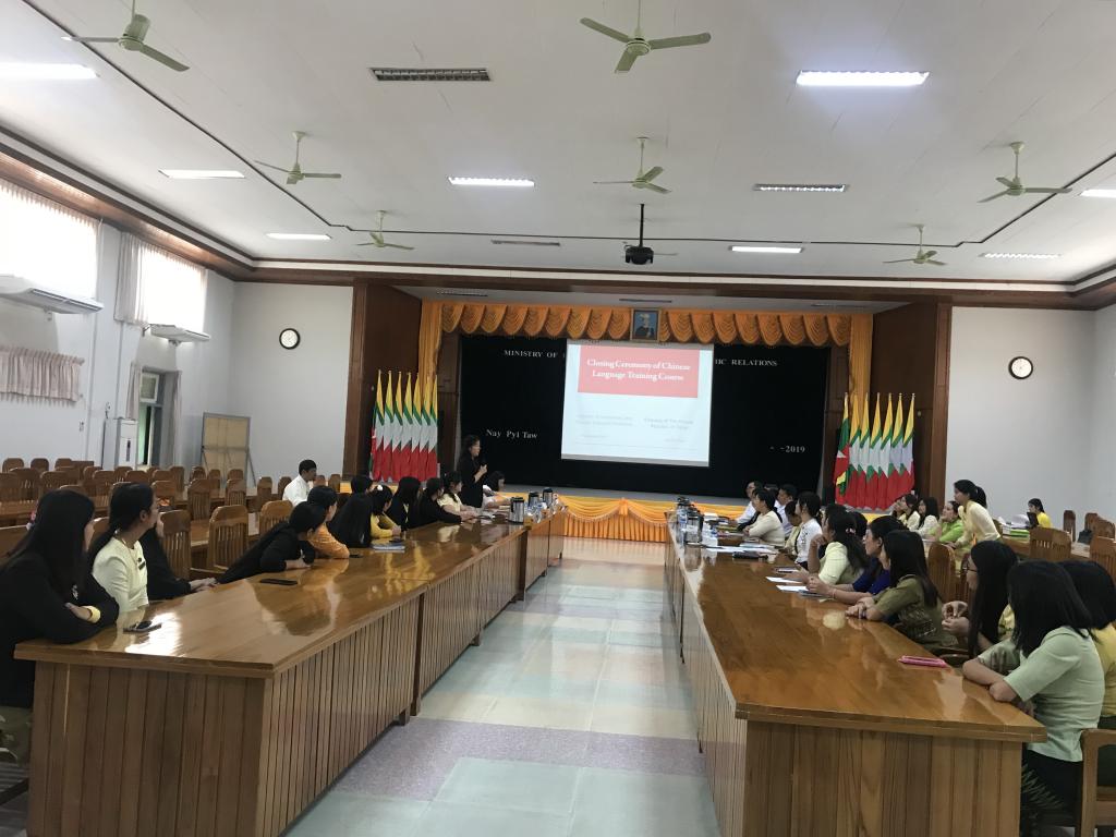 投资与对外经济关系部对外经济关系司司长U Than Aung Kyaw表示,缅中胞波情谊源远流长,学习汉语有利于深化对中国文化的了解,加深缅中胞波情谊,促进缅中经济走廊的建设。感谢中国大使馆对开设汉语培训班给予的支持,感谢汉语教师的辛勤劳动及支持,感谢学员们的努力学习,鼓励本部门及更多公务员多学习汉语。