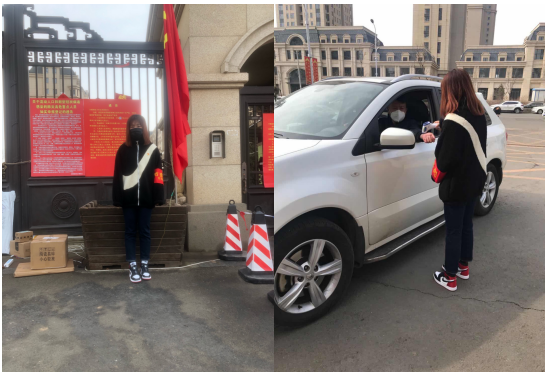 孙明祺同志家住内蒙古呼和浩特市,在战疫期间,她积极响应居住社区号召,以返乡大学生的身份加入了呼和浩特市昭君路办事处万锦观悦临时党支部,与其他党员同志一同开展疫情防控工作,对社区人员分片包干、全覆盖登记排查、宣传普及疫情防控知识。孙明棋同志是临时党支部年龄最小的一个,身处北方零下二十几度的天气里,每天换岗值班,从未退缩。工作包含及时向当地居民宣传教育,每天在小区门口消毒站对每一个进入小区的人员进行测量体温,对进入车辆进行消毒等。