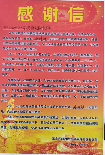战疫前行,点赞青春——文学院学生党员最美守护者