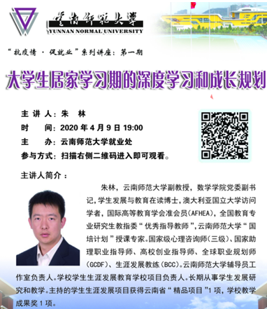 为切实做好我校新冠疫情防控期间的毕业生就业指导工作,进一步提升就业指导的精准性,增强毕业生就业本领和就业热情,就业处整合校内资源以线上讲座形式开展“抗疫情·促就业”系列讲座。首期讲座由数学学院副书记朱林担任,于4月9日晚19:00通过腾讯课堂向我校学生作网络直播视频讲座。