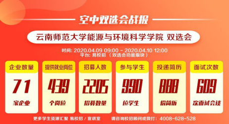 进一步贯彻落实党中央、国务院关于促进高校毕业生就业工作的决策部署,减少疫情对毕业生就业工作的影响,能源与环境科学学院积极响应学校就业处关于做好疫情期间就业帮扶工作安排,于2020年4月9日2020届毕业生网上招聘双选会为毕业生和用人单位搭建交流双选平台