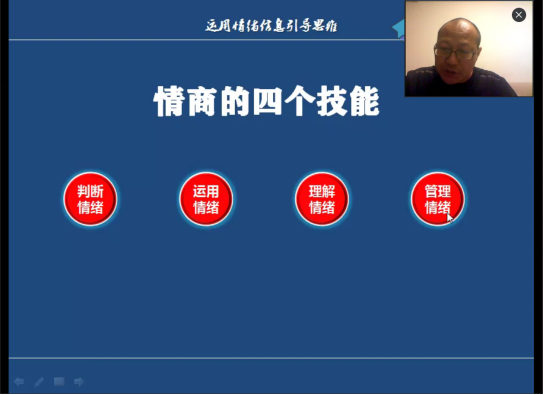 白宇老师提出了解自己情绪、表达自己情绪以及了解他人情绪的方法,让大家用正确的方式面对自己和他人的情绪,他还总结了处理情绪的四个要点:判断情绪、运用情绪、理解情绪、管理情绪。