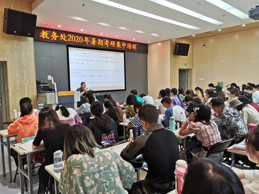 7月22日上午9点,培训正式开始。此次培训设政治精讲、英语阅读、英语写作、英语完形填空和翻译四个培训主题,每个主题培训2-7天不等。教务处聘请的四位考研培训名师针对四个培训主题,紧扣考纲,深入浅出,强调方法引导和思维训练,注重活跃课堂氛围,整个培训过程专业且精彩。为保证培训效果,教务处还专门配备培训班主任,以维护培训秩序,开展每日督学,落实防疫举措。