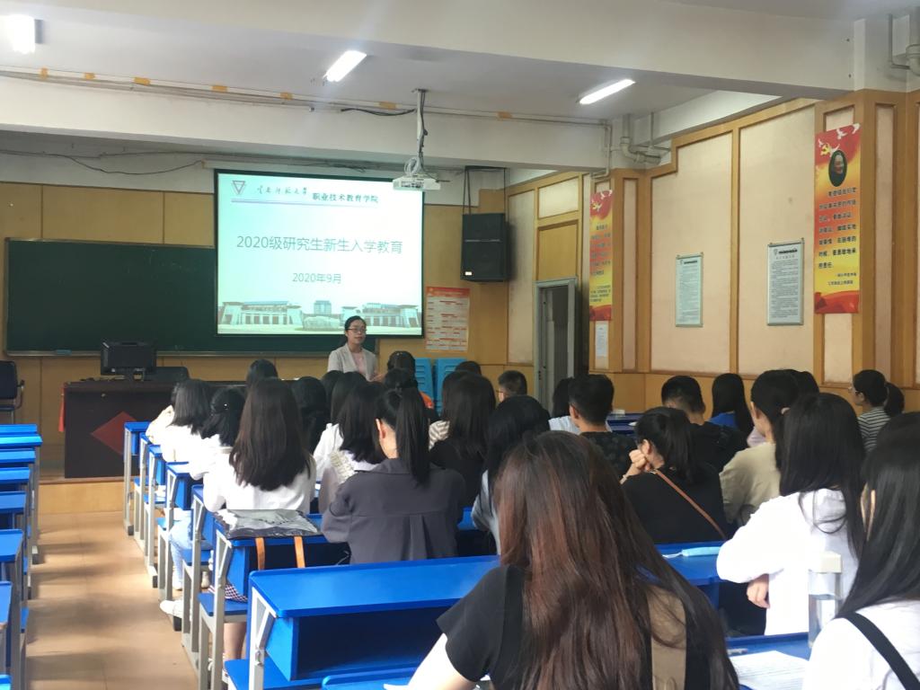 9月4日下午,职业技术教育学院在明析楼225教室举行2020级研究生新生入学教育大会。学校研究生院和研究生部(处)老师以及疫情防控专家分别为研究生新生进行专题教育。职业技术教育学院党委书记刘虹、副书记向斯楠、研究生辅导员左文君和全体研究生新生参加了此次入学教育。