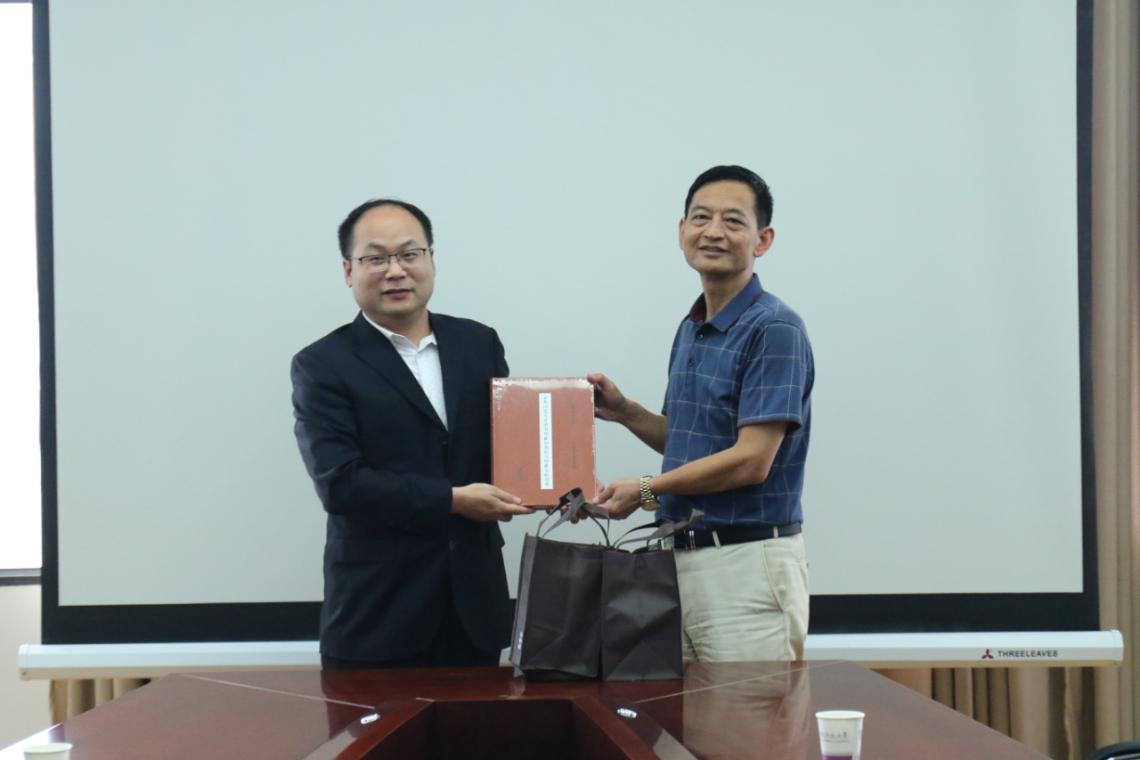 随后,艾新革副馆长一行与我校图书馆相关部室主任在图书馆六楼会议室就图书馆的文献资源建设、特色馆藏建设、智慧图书馆建设等问题进行了交流研讨。