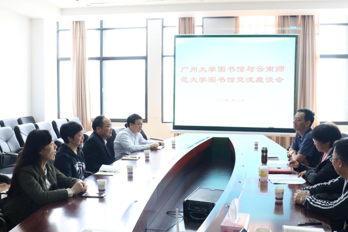 9月24日下午,广州大学图书馆艾新革副馆长一行4人到我校呈贡主校区图书馆调研,并针对图书馆文献资源建设、特色馆藏建设及智慧图书馆建设等相关问题进行交流研讨。