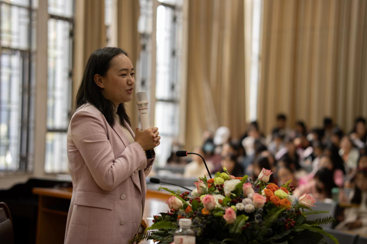 11月1日,外国语学院2006级英语专业优秀校友何永群应邀在呈贡主校区明德3号楼报告厅作创新创业专题讲座。外国语学院党委书记王丽峰,党委副书记杜敏菊,副院长杨霓,团委书记朱晓媛,以及来自各个学院的三百余名学生参加了此次讲座。讲座由党委副书记杜敏菊主持。