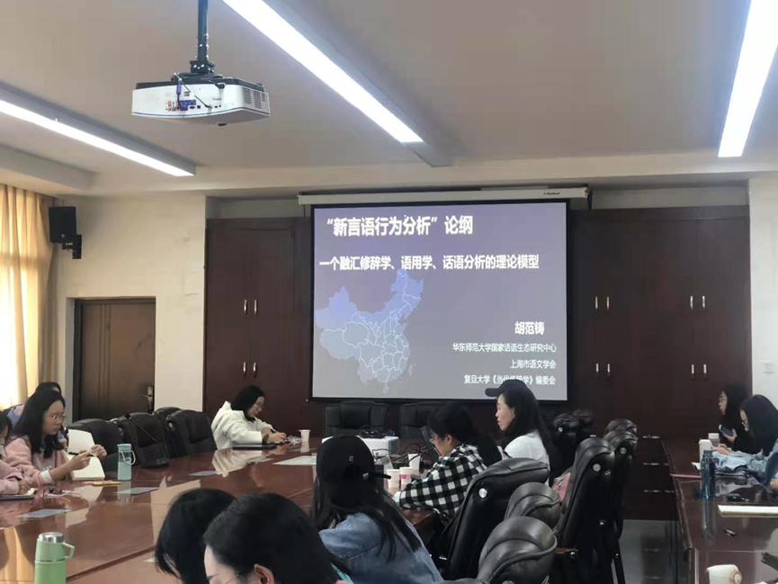 11月13日上午,华东师范大学二级教授、华东师范大学话语研究中心首席专家、上海市语文学会会长、复旦大学《当代修辞学》(CSSCI专业性期刊)编委会主任胡范铸教授应文学院邀请做客“一多中文讲坛”第59期,在明德3号楼会议室进行了题为“新言语行为分析:一个融合修辞学、语言学、话语分析的理论框架”的专题讲座,讲座由文学院副院长余金枝教授主持。
