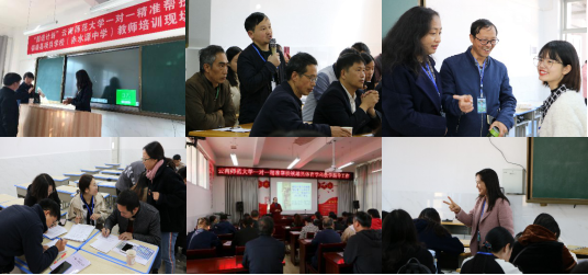 11月12日至15日,继续教育学院党委书记肖飞带领专家团队和项目管理团队一行26人对镇雄县赤水源中学、洗白小学等10所被帮扶学校的教师开展第一阶段(第一批)精准培训。本次培训活动主要安排在赤水源中学和洗白小学。各学科开展了听课诊断、课例分析、同课异构、一线优秀教师上示范课、高校专家专题讲座等培训活动。高校专家专题讲座内容涉及中考高考复习备考、教师专业成长、教师专业发展路径与策略、课堂有效教学、相关学科发展趋势与教师自我发展意识、教学技能技巧、课程标准解读、教学设计、教学方法多样性等方面。各学科专家深入课堂、学生和教师中间进一步调研了培训需求及信息技术开展及设备使用情况等,为下一步各学科培训方案细化打下坚实基础。