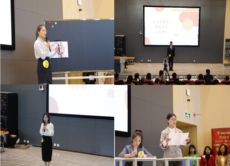 复(决)赛分为公招组、事招组、企招组三组六个类别,比赛流程为个人陈述、竞职演说(技能展示)、压力面试、无领导小组讨论等环节。参赛同学通过各比赛环节全面展现了仪表仪容、表达能力、应变能力,提高了同学将所学专业知识与实际求职问题相结合的能力。