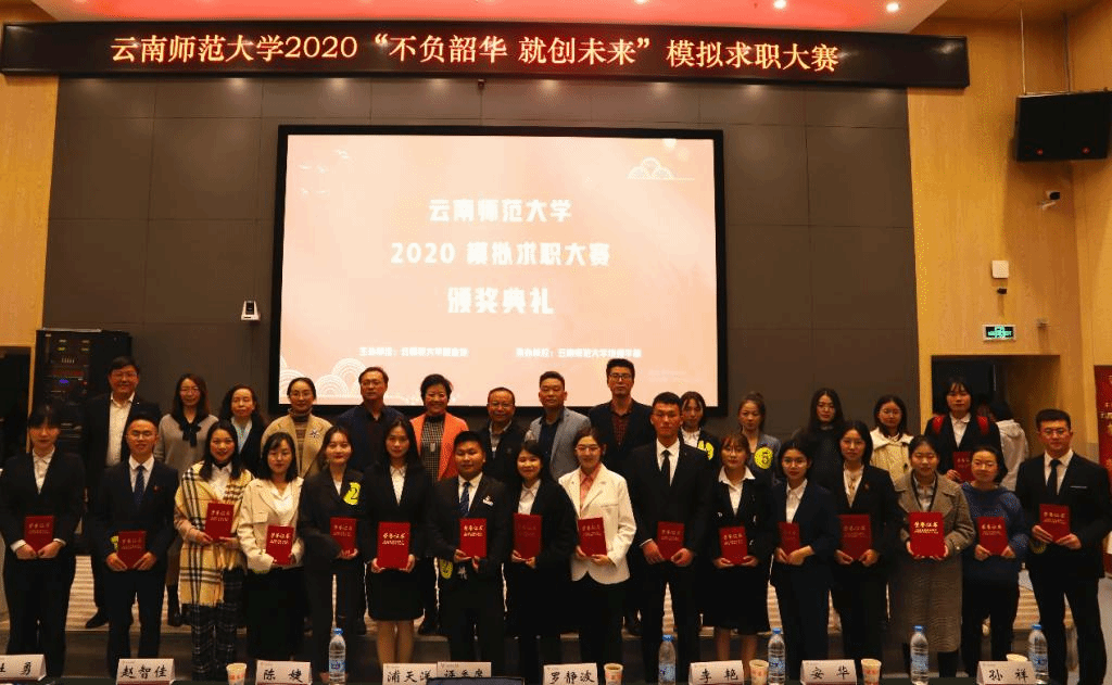 为贯彻《云南省教育厅 云南省人力资源和社会保障厅关于举办云南省2020年大学生模拟求职大赛的通知》文件精神,加大就业帮扶力度,创新就业指导模式,以赛促教、以赛促学、以赛促训,提升学校毕业生就业竞争力,云南师范大学2020年模拟求职比赛决赛暨颁奖于2020年11月15日下午14:00在国家教师教育教学实验中心214报告厅举行。
