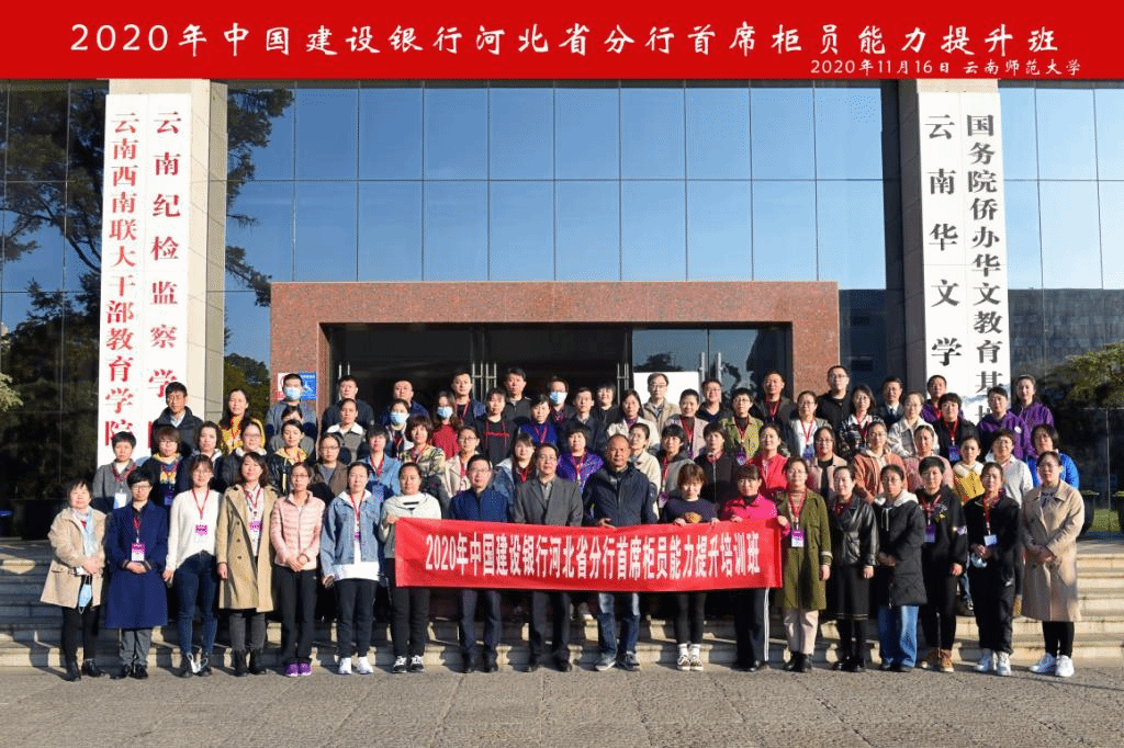 11月16日,由中国建设银行河北省分行、建行大学河北省分行分校主办、云南师范大学经济与管理学院协办的2020年中国建设银行河北省分行首席柜员能力提升培训班在我校开班。经济与管理学院联系领导李国疆、学院党委书记华致雄、院长张广斌、党委副书记赵显辉出席了开班仪式。仪式由学院副院长常志有主持。