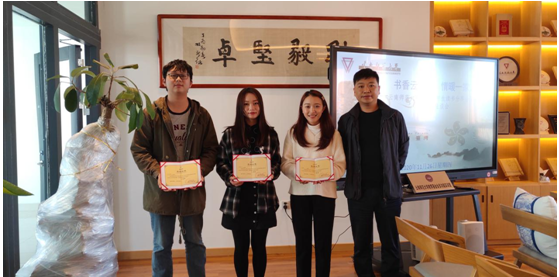 随后,叶放(云南文山)、苏意汶(中国台湾)和孙武英(中国香港)三位同学朗诵我校港澳台学生参加全国中华文化知识大赛参赛作品《梁思成的茅草屋》。张辰老师为三位同学颁发校级荣誉证书。