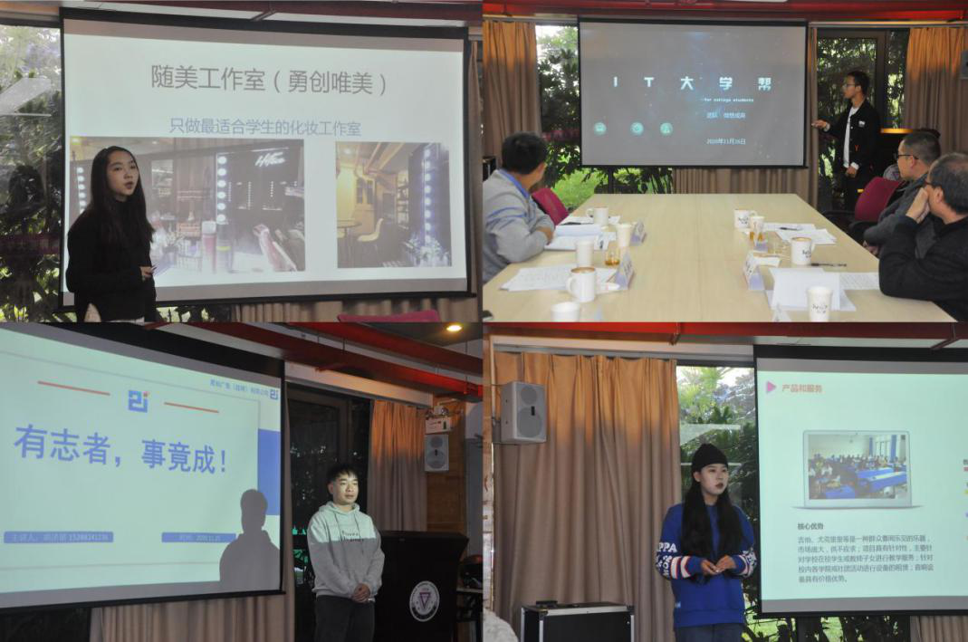 学生创业团队负责人依照抽签顺序及评审规则依次进行5分钟项目路演及3分钟现场回答提问,路演过程中各项目分别介绍了其项目内容、运营模式、运营情况、团队情况、后期发展规划等,评审嘉宾根据项目的竞争力、可持续性等方面做出专业的点评,最终根据项目的综合情况给予评分。